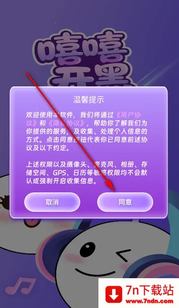 1、打开嘻嘻开黑app,点击同意隐私政策