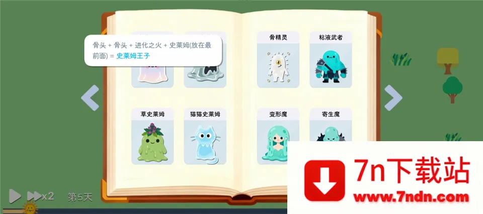 5、点击右下角的书本标识,可以查看不同史莱姆进化所需的卡片。