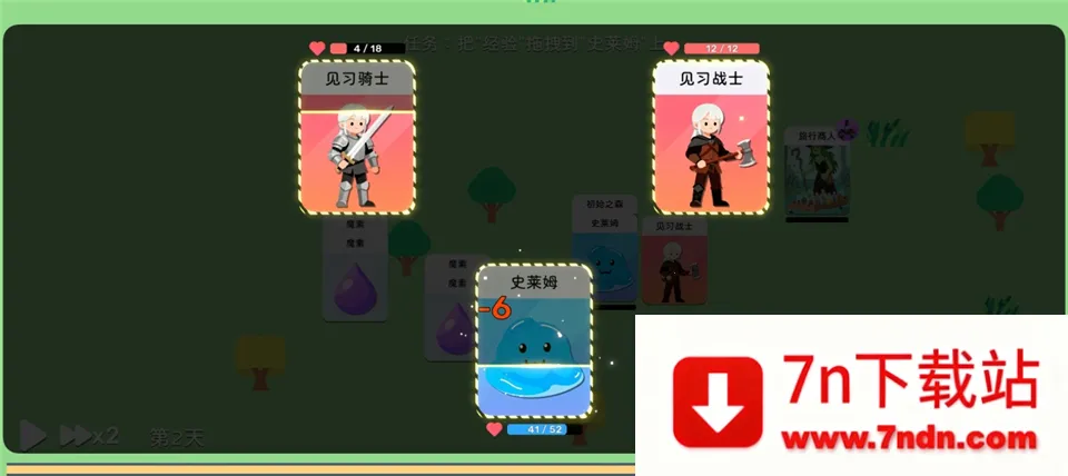 3、将经验卡拖到史莱姆卡上可以让史莱姆获得经验。