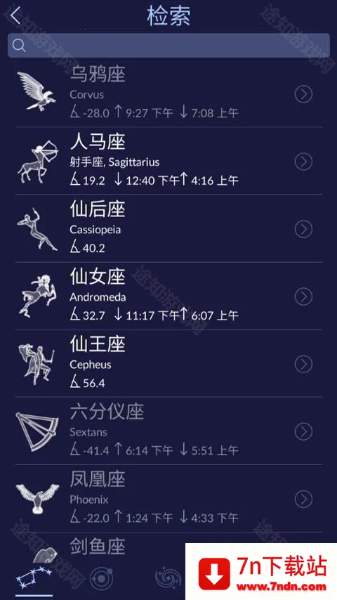 3、点击屏幕左下角搜索标签,可以直接搜索想要观看星座或者恒星;
