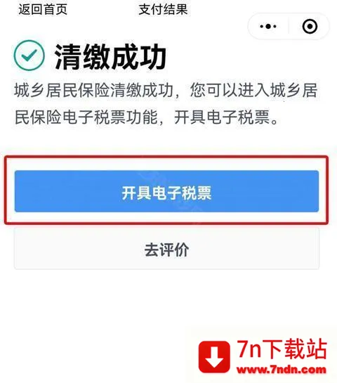 8、成支付操作后跳转“清缴成功”界面,即完成缴费,并且可以点击【开具电子税票】进行发票开具