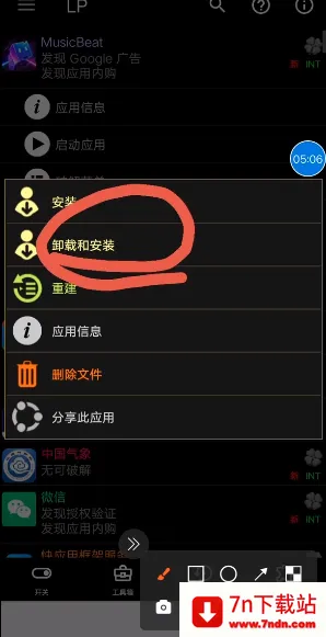 8、点击转文件,选择卸载和安装(不能选择直接安装)