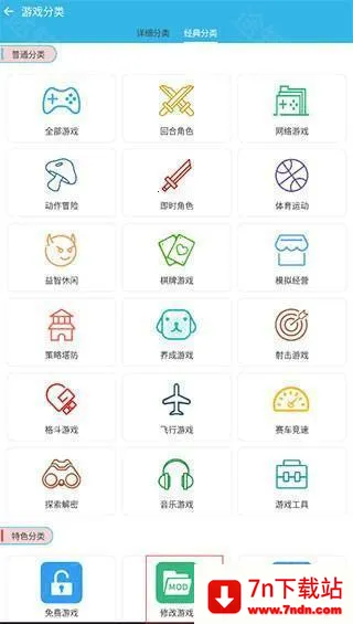 3、往下滑找到特色分类后,就能找到修改过的游戏了,点击修改游戏的按键进入。