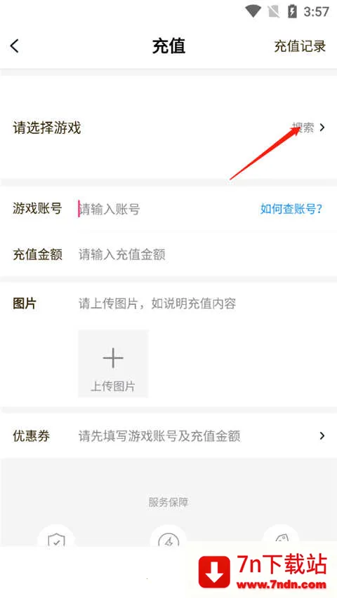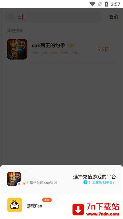 3、输入你想要的游戏名后,选择游戏fan充值游戏平台;