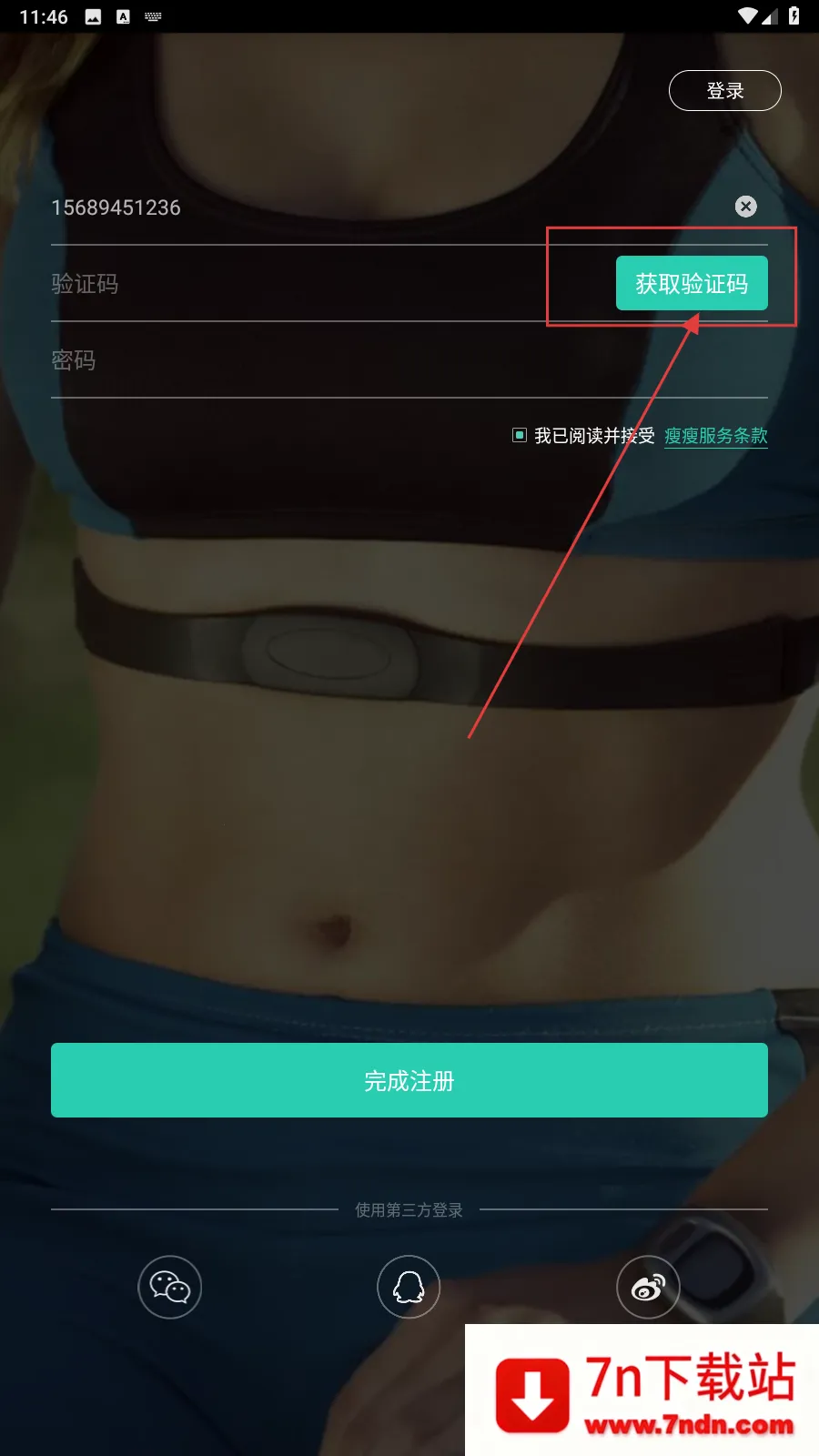 2、填写好后,点击【获取验证码】。