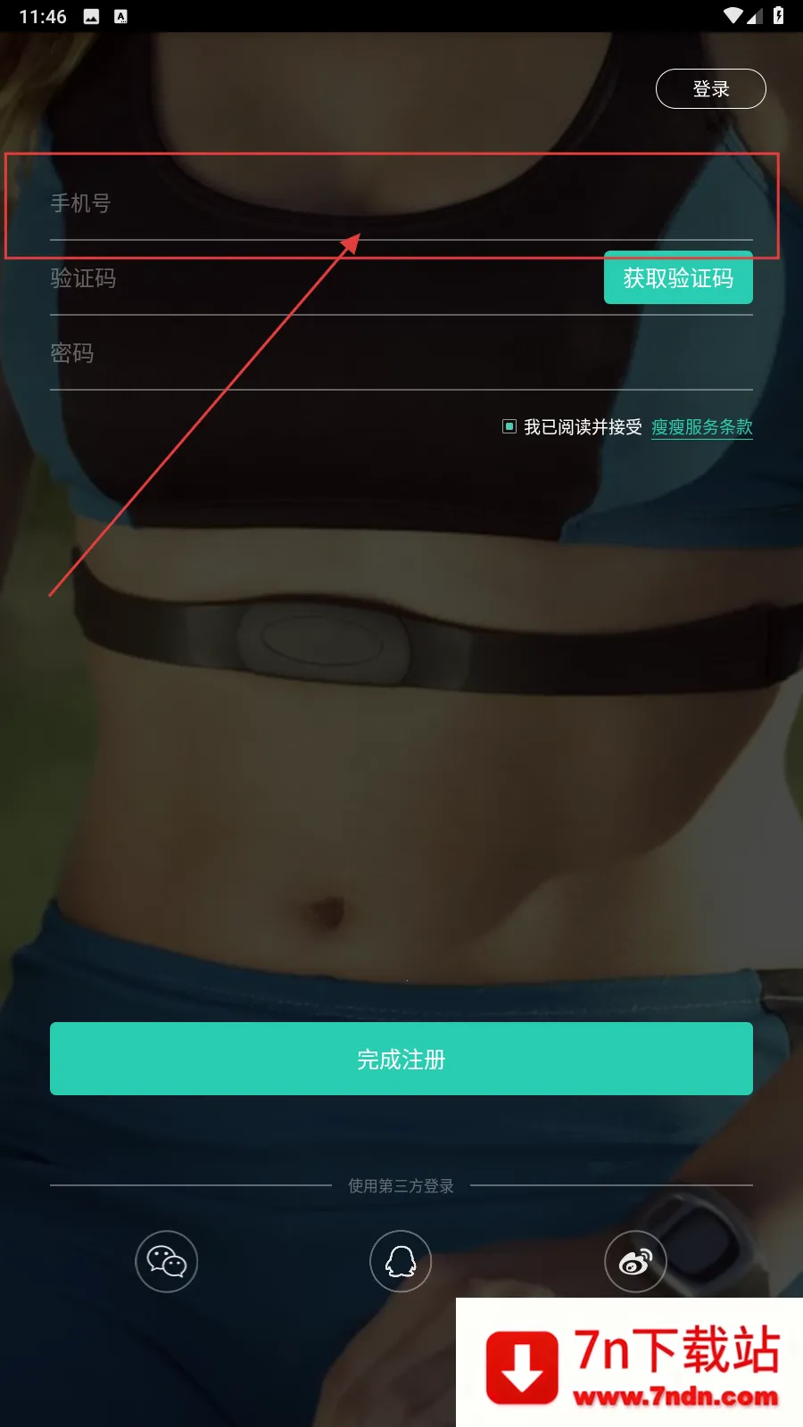 1、打开应用,填写手机号。