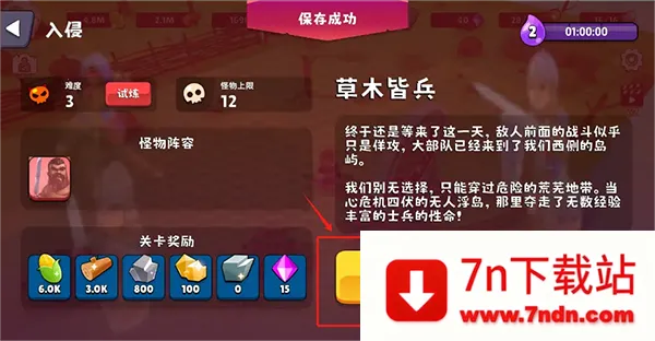 点击入侵之后,可以看到右上角有一个试炼按钮。点击试炼,会升级难度,增加敌人数量及战力。但是后续可以获取更多的紫宝石哦!