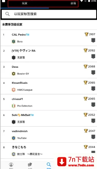 搜索包含玩家和部落两个部分,都是通过标签来找到相对应的成就、等级等信息。