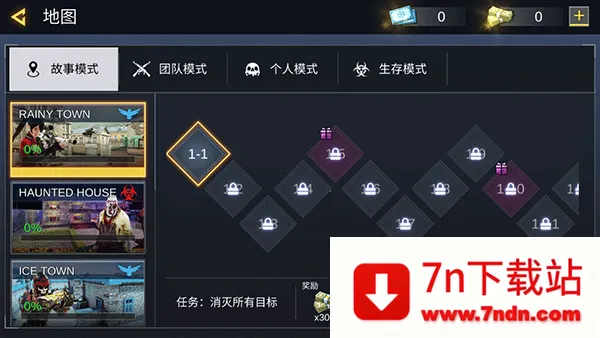2、玩家在游戏中可以选择自己喜欢的模式进行畅玩,其中提供了故事、团队、个人、生存模式这四种玩法模式可以体验;