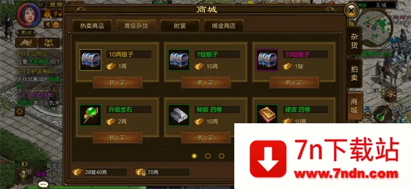 商城有出售升级宝石、硬皮、秘银,只要花费金子就能购买,也可在绑金商店使用绑定金子购买秘银、硬皮。每周商城还会退出限购礼包,可根据自己的策略购买礼包哦!