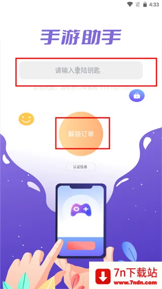 2、随后打开手游助手,进入输秘钥界面,输入已获得的秘钥。