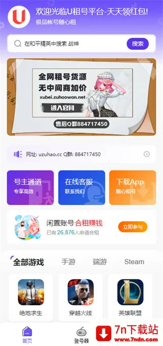 3、游戏体验优:游戏内有优化与加速,汇聚众多热门游戏,租号后若没人租还能一直玩到爽,还有24小时服务和海量优质账号。