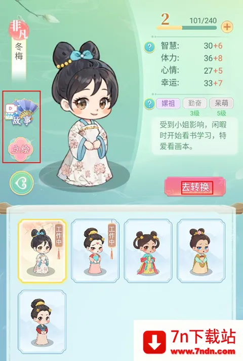 1、完成采女选拔后就会变为宫女,玩家在宫女页面可以查看其信息,还有专属故事以及立绘可以查看。