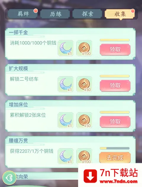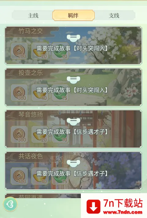 玩家通过选拔、升级宫女、解锁故事羁绊等可以解锁羁绊成就,领取丰富成就奖励。