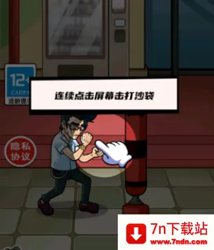 3、然后我们就可以练拳了,点击屏幕即可击打沙袋,我们首个任务是打碎8个沙袋;