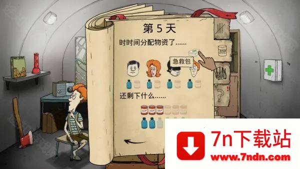 1、物资差不多2水1食物,前期要派(卖)一个人去找物资,注意不要让这个人生病,不然后面会很不好过