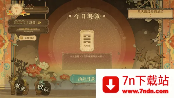 1.首先需要抽取卦象,卦象是决定我们这局游戏运营的关键,其中有牌型加强、增加宝钱收入等等强化。