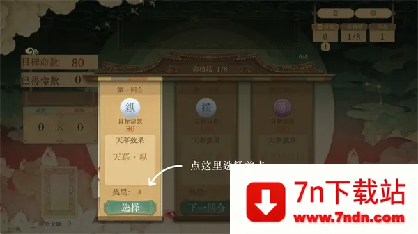 2.进入关卡,每个关卡分为三个回合,每增加一个回合命数需求更高,需要达到相应命数即可通关。