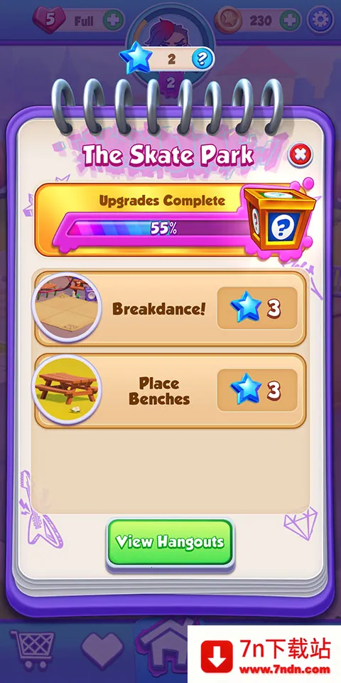 这款游戏带来了丰富有趣的体验。经典三消玩法简单易上手,将相同颜色方块排列消除,完成任务获奖励解锁新关卡。通过升级、过关、升级场景元素等方式获取宝箱,能开出各种奖励。游戏特色众多,可与角色搭档破解谜题,探索并装饰滑板天堂,组建团队赢取特别奖励,使用超强道具通关,打造自己的故事。支持离线畅玩,更新还带来新关卡和玩法改进。整体而言,是一款值得一玩的消除类游戏。