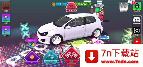 1、打开项目漂移2.0最新版,进入游戏后,点击屏幕中间的开始按钮;