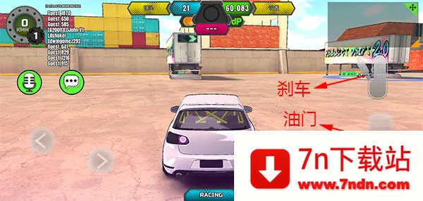 4、等待一会加载,进入游戏如图,屏幕左边控制方向,右边刹车,油门,倒车;