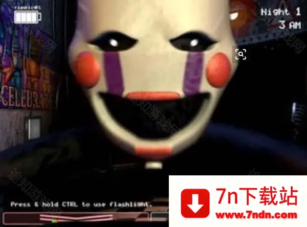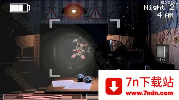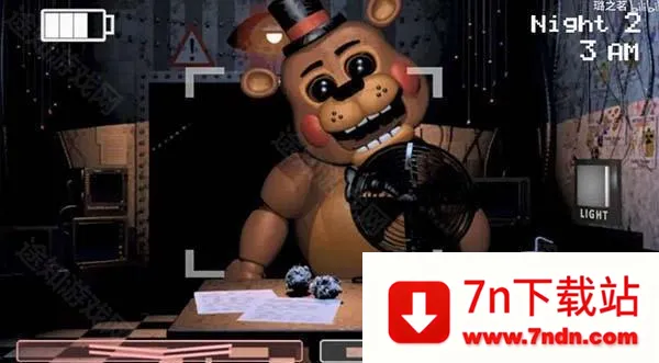 攻略:第一至第二晚没老玩具三人组,第三晚出现,流程上发条后放监控时无论有没有玩具熊,立马戴头套,没有或应对成功后左右通风管名照一次,闪一闪霍斯,然后反复即可。