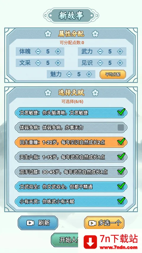 2、接着选择角色属性,以及天赋;