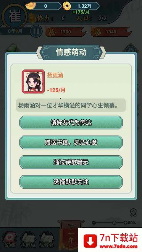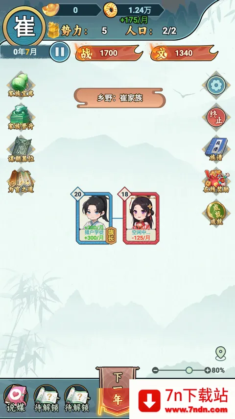 丰富随机事件,深山秘境获上古典籍、村落偶遇能工巧匠、险地救下未来得力族人等,提升角色属性。