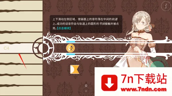 1、在游戏中上下滑动左侧区域,使画面上的音符落在中间的轨道上。成功的话音符会与轨道上的圆形的节拍接触并被点亮。