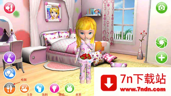 3、例如,点开吃饭按钮,就可以选择艾娃想吃的食物给她。
