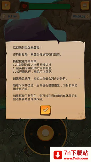 如果你喜欢登山冒险,那这款登山模拟器游戏绝对适合你!它能让你体验与众不同的登山乐趣。操作超简单,进入游戏后,点击右上角播放图标,选好登山者角色和岩石地图,往跳跃反方向移动操纵杆,松开就能跳跃。