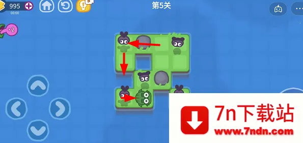 4、最后顺着箭头指示的方向移动,就能完成剩余两只蚊子的吞食。
