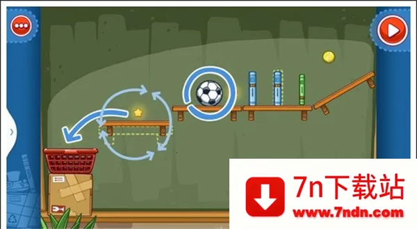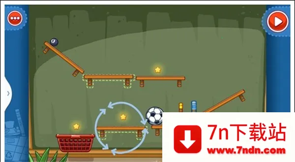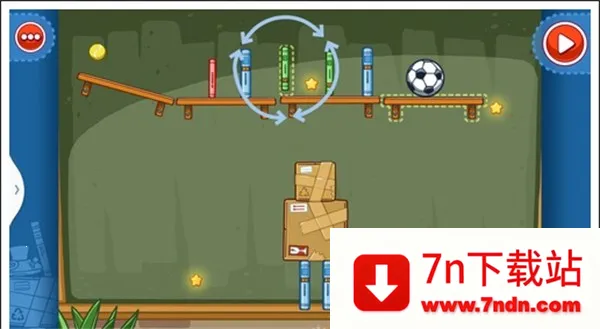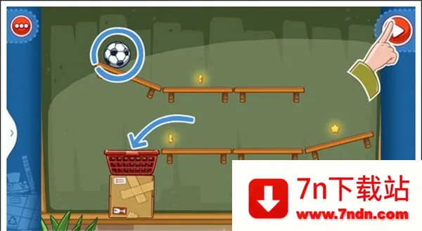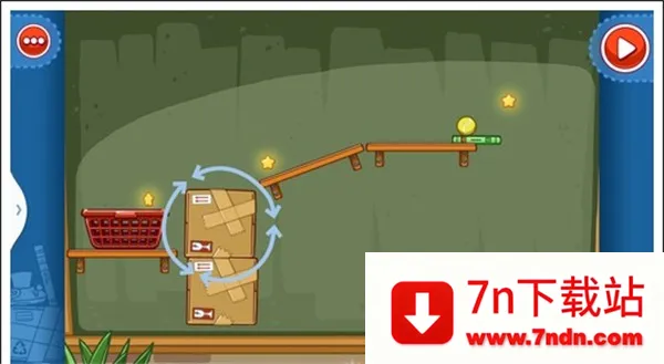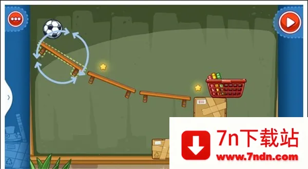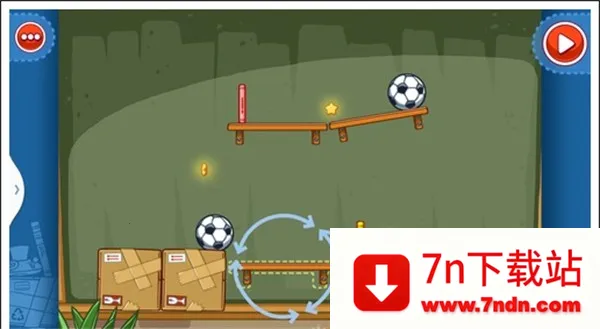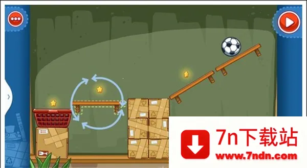 我们只需要将两个木箱重叠放在中间空白处,就可以让球飞过去,获得星星。
