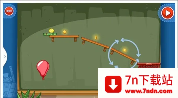 我们只需要将两个木板凳各自斜放在星星上头就可以让气球自由飞上去,获得星星。
