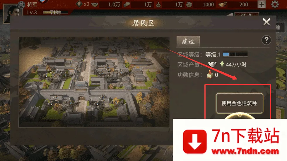 2、在居民区这类地块上点击建造,就能提升区域等级和产量,记得使用加速工具有时能省下等待时间。