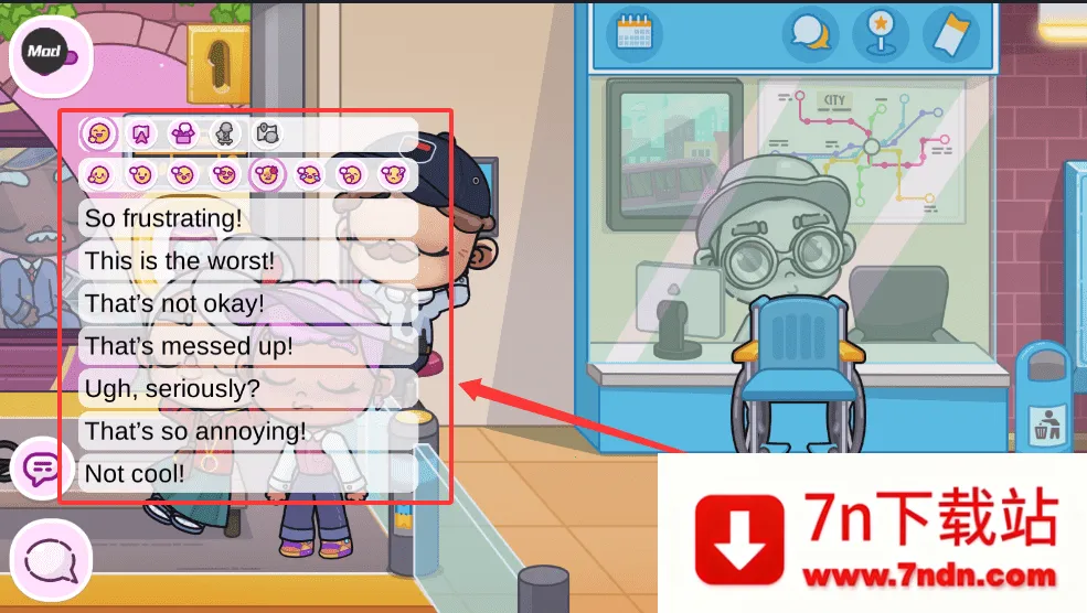 2、接着在聊天中如果遇到让人不满的情况,可以使用内置的情绪短语例如 So frustrating、That's not okay 来表达心情。