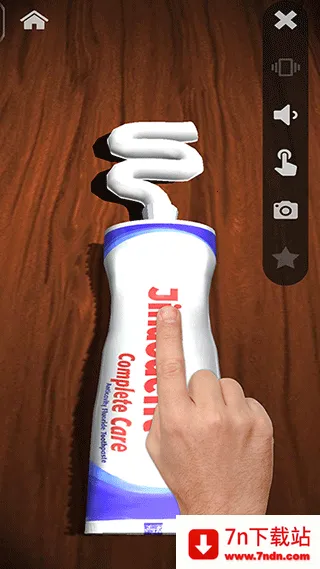 4、进入,页面会出现一个拧开的牙膏,点击牙膏可以挤压,还伴有模拟真实的声音。