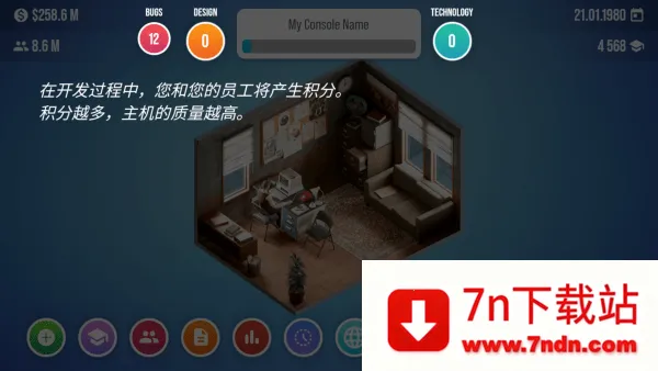 这是一款能让玩家建立游戏机帝国的经营模拟器游戏。从1980年起步,那时游戏行业刚兴起。玩家可设计推出各类游戏设备,在独特编辑器中打造从设计到技术规格的所有内容。能创建主机并编辑,定价销售,员工开发产生积分提升质量,创建副本数量实现自动生产。有历史模式匹配时代演变,可进行控制台创建、营销推广、研发探索等。从初始小办公室开始,不断壮大,做出战略决策,建立强大游戏帝国,玩法丰富令人沉浸。